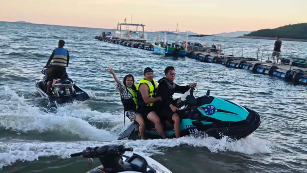 下午,大家转战海滨沙滩,投入到蔚蓝大海的怀抱中。踩水、嬉浪、沙滩游戏……欢声笑语随着海浪此起彼伏。还体验了刺激的摩托快艇,在波光粼粼的海面上感受速度与激情。阳光、沙滩、海浪,还有一张张灿烂的笑脸,构成了这个秋天难忘的画面。
